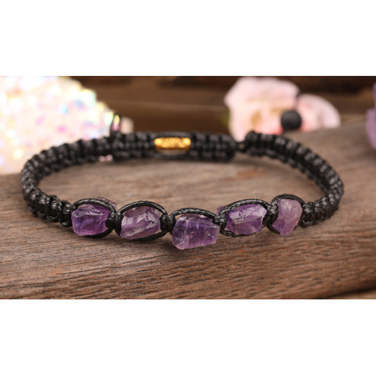 Ametyst surový náramek přírodní kámen, ručně pletený, nastavitelná velikost, kámen králů a biskupů