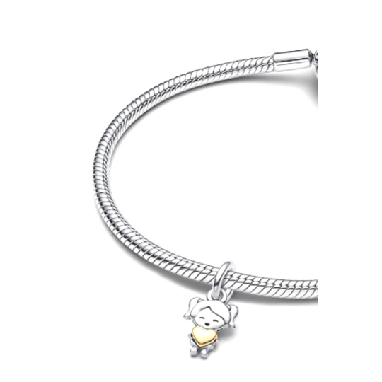 Noste symbol své drahé dcery nebo důležité dívky ve vašem životě s naším přívěskem šťastné děvče. Toto sladké kouzlo, vyrobené ze sterlingového stříbra s jemně pozlaceným 14k zlatem, je dokonalým symbolem pro oslavu její radosti a lásky, kterou sdílí.