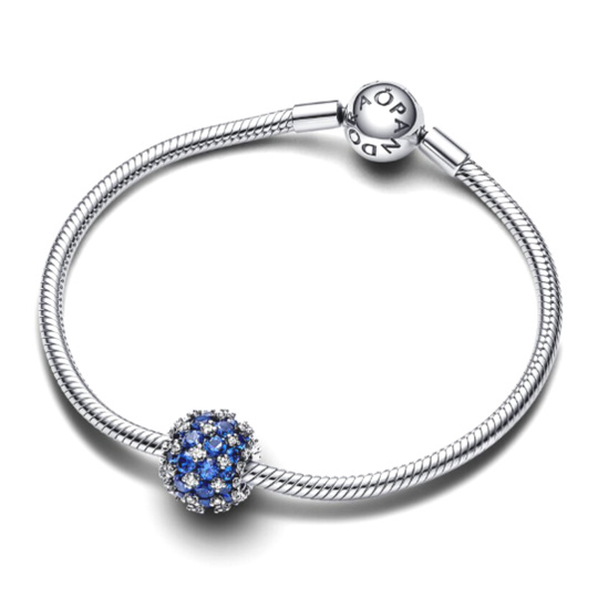 Charm Sterlingové stříbro 925 Třpytivé kulaté modré kouzlo Pavé, korálek na náramek symbol