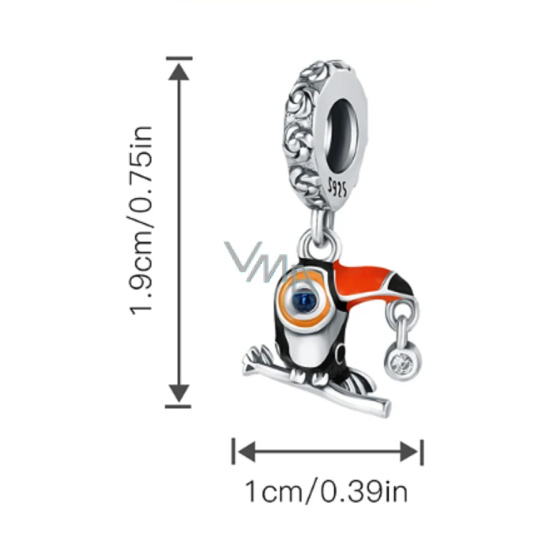 Charm Sterlingové stříbro 925 Tukan přívěsek na náramek zvíře