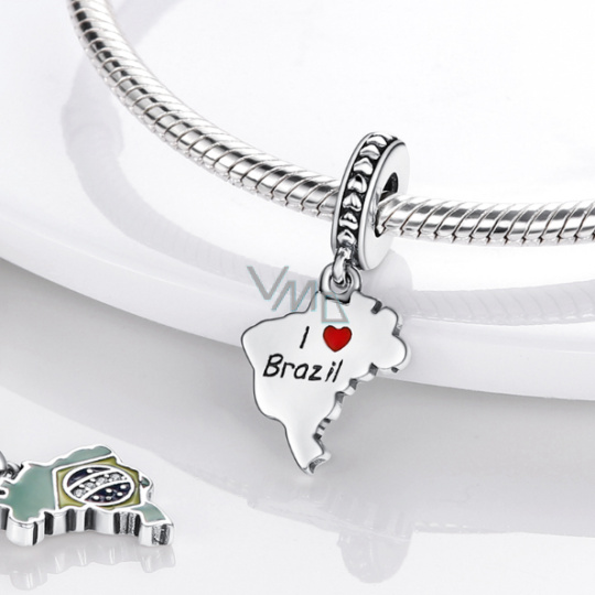 Charm Sterlingové stříbro 925 Brazílie vlajka - houpající se mapa, přívěsek na náramek cestování