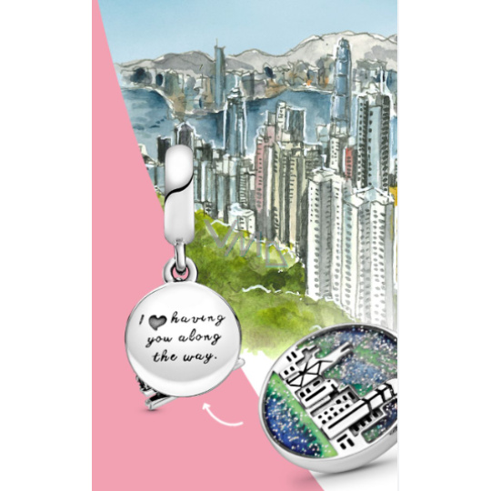 Přívěsek se slavnou tramvají a panoramatem Hong Kongu. Přemýšlíte, co si přivezete z výletu z Hong Kongu? Kupte si tento stříbrný přívěsek na náramek s motivem tramvaje a panorama a vzpomeňte si na tento výlet, kdykoliv se podíváte na svůj náramek.