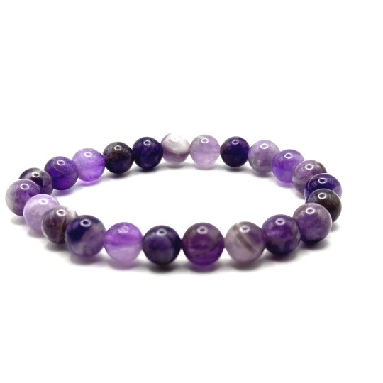 Ametiszt chevron karkötő rugalmas természetes kő, 8 mm-es golyó / 16 - 17 cm, a királyok és püspökök köve