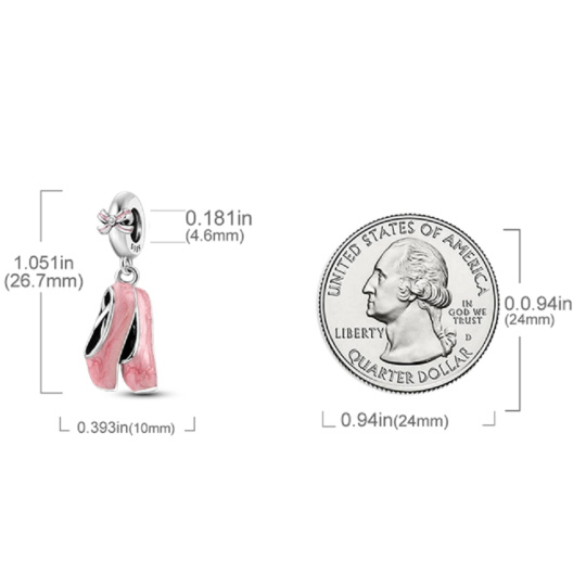 Visací přívěsek 925 Sterling Silver s párem balerínských bot navržených s hladkým růžovým smaltem. Prsten přívěsku je vybaven růžovou mašličkou zdobenou zářivě bílým drahokamem Zirkonu. Vyprávěj svůj příběh s každým přívěskem a vytvoř náramek, který odráží, kdo jsi. Tvůj styl. Tvůj náramek. Tvůj příběh.