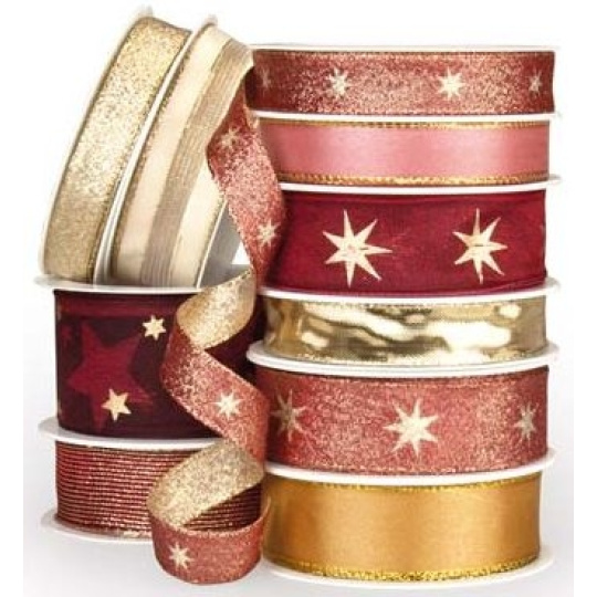 Ditipo Stuha látková vánoční s drátkem Růžová se zlatými okraji 4 m x 15 mm