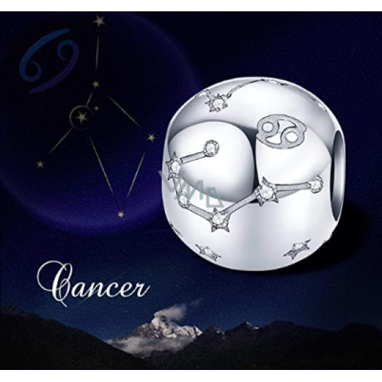 Charm Sterlingové stříbro 925 znamení zvěrokruhu Rak + zirkony, korálek na náramek 9 mm