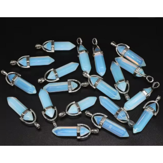Opalit kyvadlo šestihran přívěsek syntetický kámen 41 x 13 mm, kámen přání a naděje