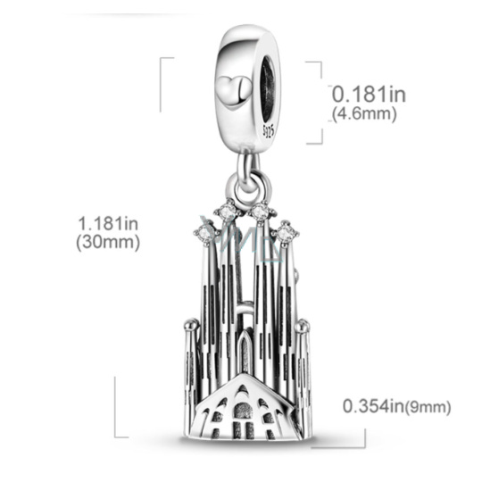 Charm Sterlingové stříbro 925 Barcelona La Sagrada Familia, přívěsek na náramek cestování