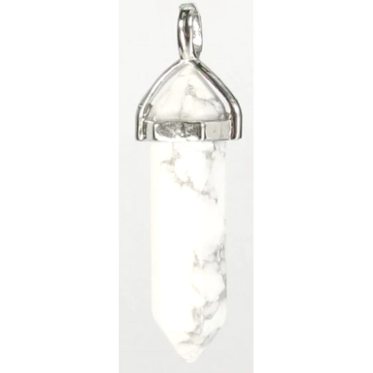 Magnezit / Howlit bílý kyvadlo šestihran přívěsek přírodní kámen 41 x 13 mm, očistný kámen