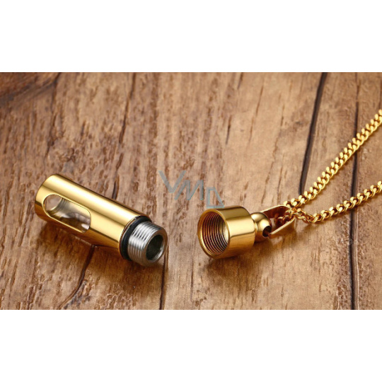 Pamětní, pietní urnový přívěsek, Dutá trubice, voděodolná, nerezová ocel, zlatá 12,6 mm x 43 mm + řetízek 60 cm
