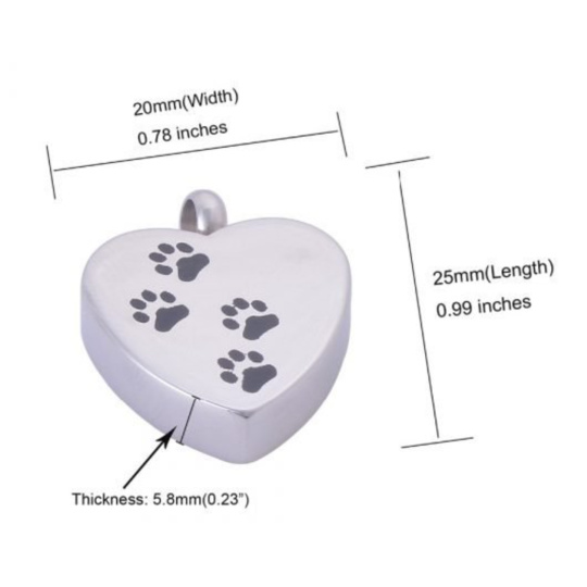 Pamětní, pietní urnový přívěsek, Srdce tlapky, nerezová ocel 20 x 25 mm