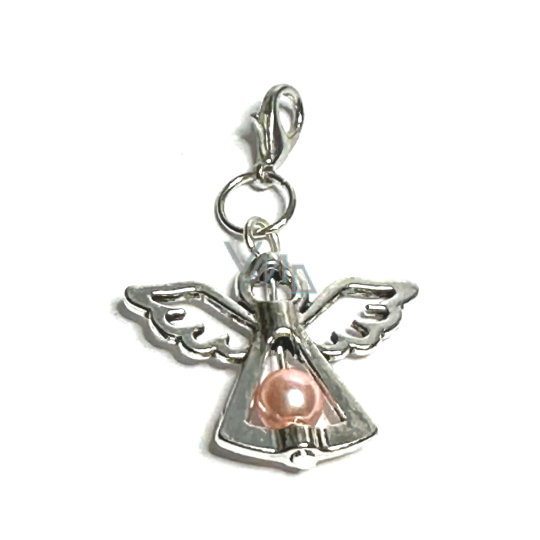 Anioł strážny przywieszek z różową perliczką 29 x 37 mm 1 sztuka
