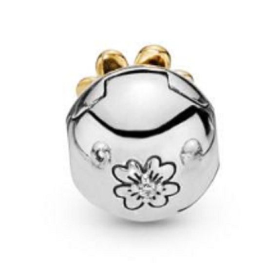 Pokaż wiele twarzy szczęścia z tym koralikiem z srebra próby 925. Dwu kolorowy element, ozdobiony 18 karatowym złotem z pozłacanym koniczynką ze srebra sterlingowego z jednej strony i liściem ozdobionym kamieniem z drugiej, z pewnością przyniesie Ci szczęście.