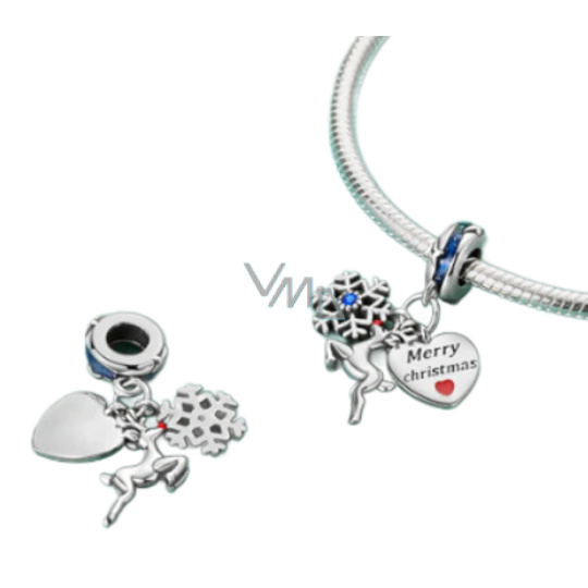 Charm Sterlingowy srebro 925 Boże Narodzenie 3w1 Zawieszka, Renifer i serce, bransoletka Boże Narodzenie