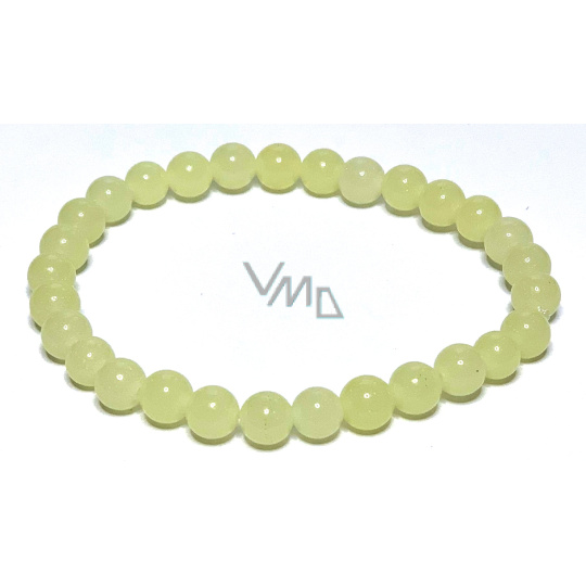 Jade Luminois Light Fosforeskujący, żółte światło w ciemności, bransoletka elastyczna naturalny kamień, kuleczka 6 mm / 16 - 17 cm