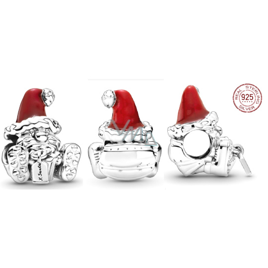 Zawieszka ze srebra próby 925 Święty Mikołaj z czerwoną czapką, koralik do bransoletki Boże Narodzenie