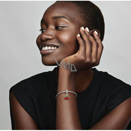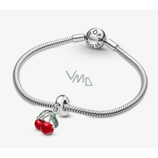 Doplňte svůj náramek o tento přívěsek v podobě třešní, který mu dodá krásnou výraznou barvu. Tento ovocný visací přívěsek, vyrobený ze sterlingového stříbra, obsahuje dvojici zralých červených třešní s detailními zelenými lístky, které jsou ručně dokončené průhledným smaltem. Noste ho samostatně nebo ho kombinujte s dalšími ovocnými přívěsky a proměňte své oblíbené šperky ve směsici lahodných, sběratelských sladkých letních plodů.