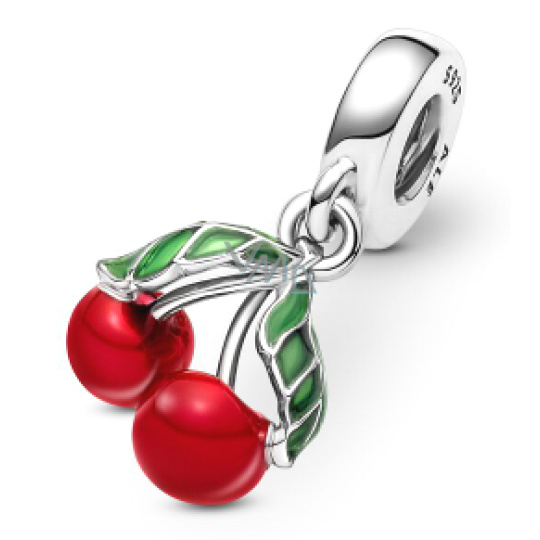 Charm Sterlingové stříbro 925 Asymetrické třešně, přívěsek na náramek, jídlo a pití