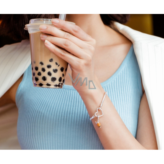 Charm Sterlingové stříbro 925 Bubble Tea - Mléčný čaj, přívěsek na náramek, jídlo a pití