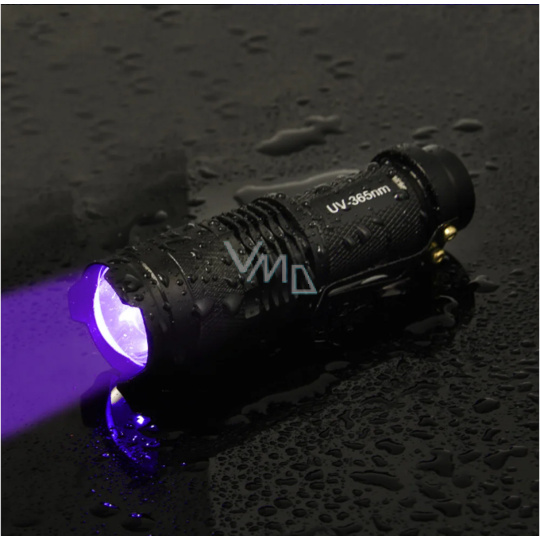- Použití: běžné domácí účely – hledání skvrn od moči mazlíčků, kontrola bankovek, minerálů nebo fluorescenčních inkoustů.