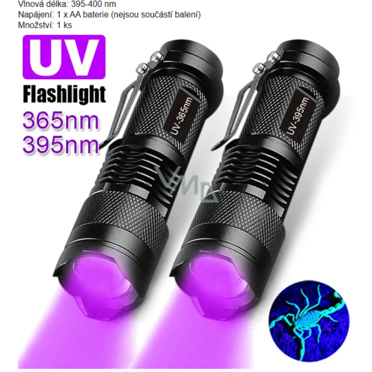 Svítilna přenosná LED UV svítilna 395 nm – kompaktní detektor nečistot a bankovek