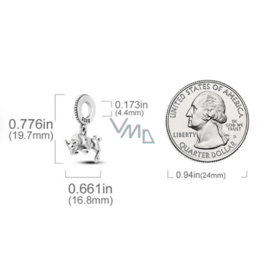 Charm Sterlingové stříbro 925 Býk, Charging Bull - Wall Street ve finančnickém centru New York City, přívěsek na náramek cestování