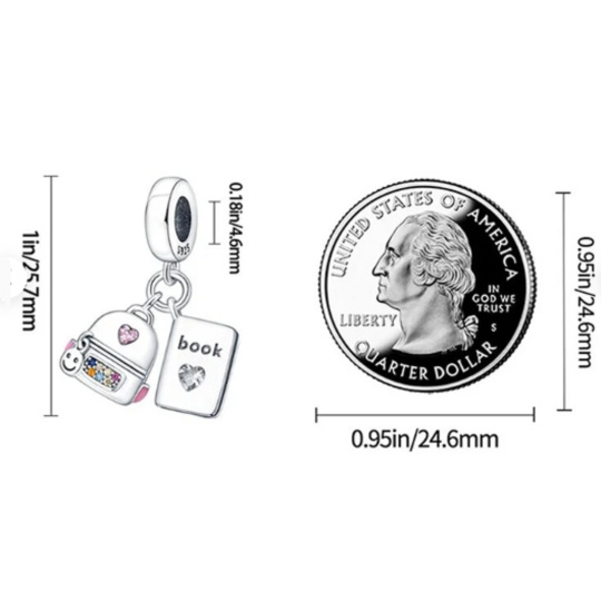 Charm Sterlingové stříbro 925 Kniha, aktovka a smajlík, 2v1 přívěsek na náramek zájmy