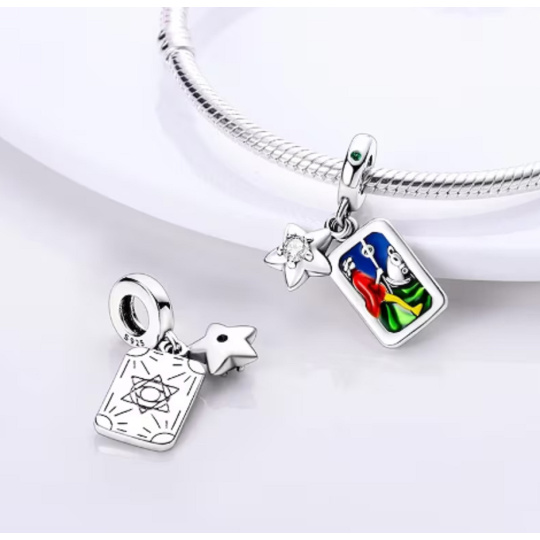 Charm Sterlingové stříbro 925 Tarotová karta a kouzlo hvězdy! 2v1 přívěsek na náramek symbol