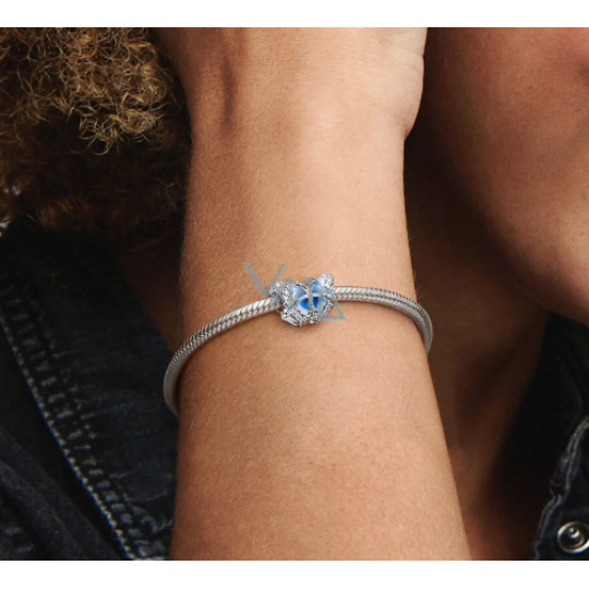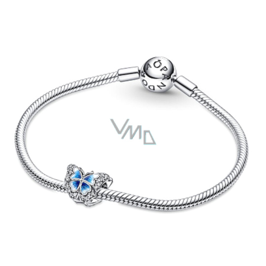 Charm Sterlingové stříbro 925 Modrý třpytivý motýl, korálek na náramek zvíře