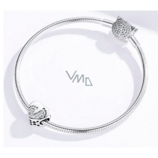Charm Sterlingové stříbro 925 Srdce otisk nožiček, korálek na náramek rodina