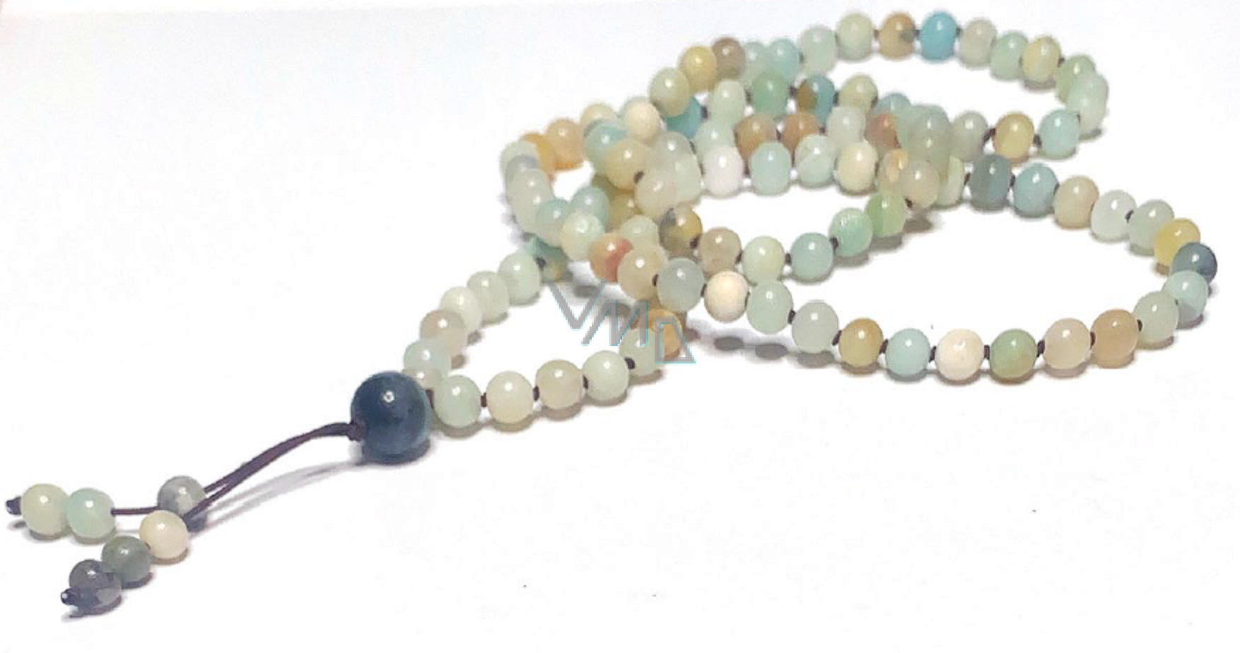 108 Mala Amazonit náhrdelník, meditační šperk, přírodní kámen vázaný, elastický, korálek 6 mm