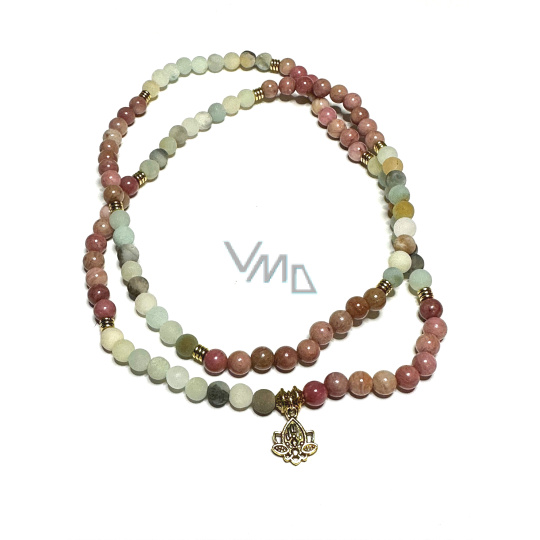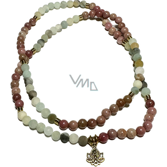 108 Mala Amazonit + Rodonit + Lotos náhrdelník meditační šperk, přírodní kámen, kulička 6 mm