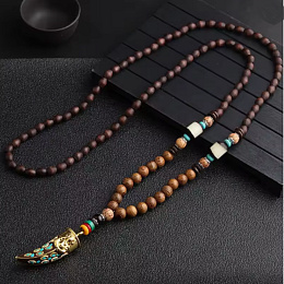 „Síla, kterou cítíte, i když ji nevidíte.“ Tento dlouhý náhrdelník typu Mala (108 korálků) propojuje přírodní energii dřeva s výrazným symbolem rohu – amuletem, který byl po staletí považován za ochránce a zdroj vnitřní síly.
