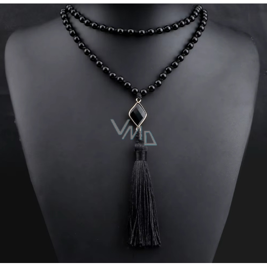 108 Mala Obsidian náhrdelník kosočtverec, meditační šperk, přírodní kámen vázaný, elastický, korálek 6 mm, kámen záchrany