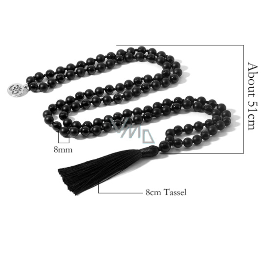 108 Mala Onyx náhrdelník matný meditační šperk, přírodní kámen, vázaný střapec, korálek 8 mm