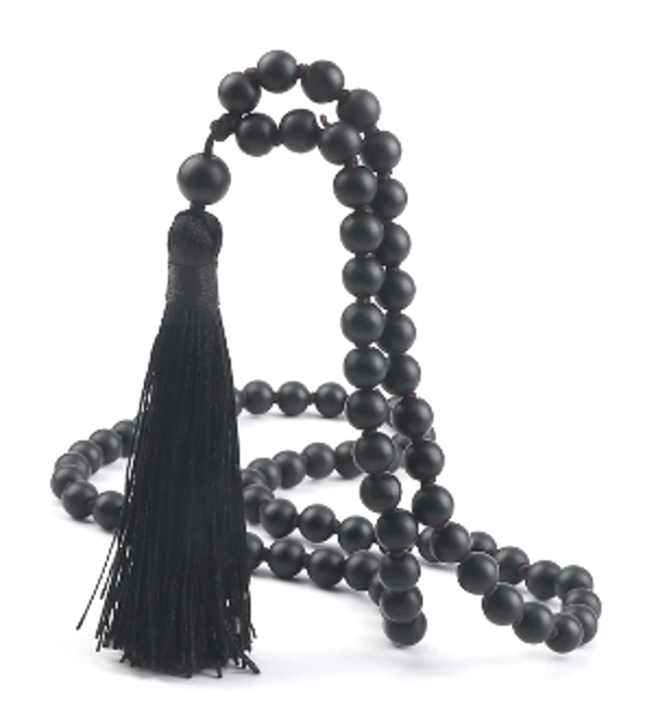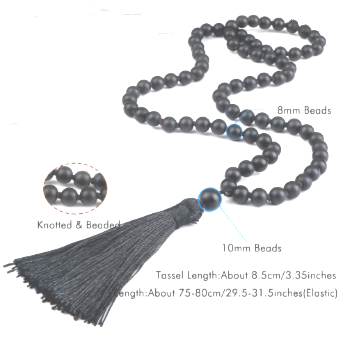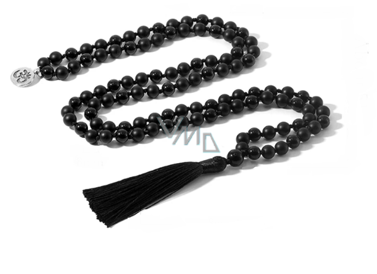108 Mala Onyx náhrdelník matný meditační šperk, přírodní kámen, vázaný střapec, korálek 8 mm