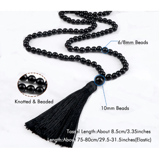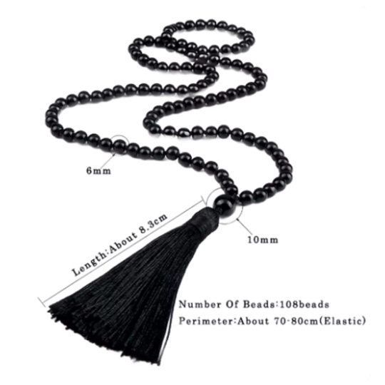 108 Mala Onyx mat náhrdelník meditační šperk, přírodní kámen, vázaný střapec, korálek 6 mm matný