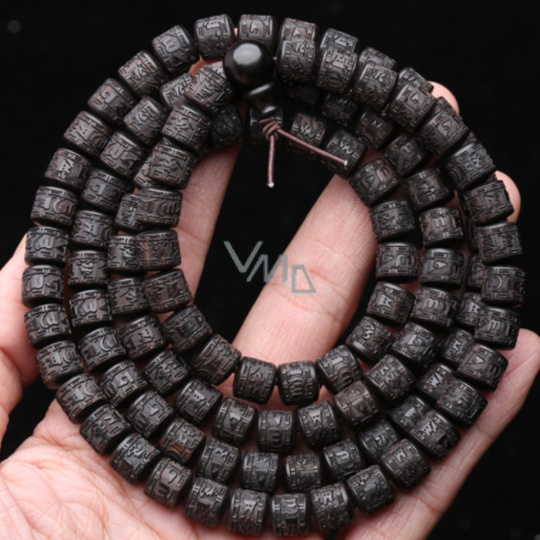180 Mala náhrdelník Ebenové přírodní tibetské buddhistické modlitební kolo, šestiznakové mantra korálky, 8 mm x 8 mm