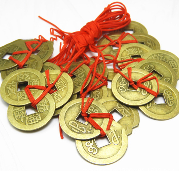 Starověké čínské mince svázané červenou stuhou nebo šňůrkou jsou velmi příznivé dárky, protože akt dávání je sám o sobě nejpříznivější, pokaždé, když nějaké darujeme, zdvojnásobíme své vlastní štěstí.