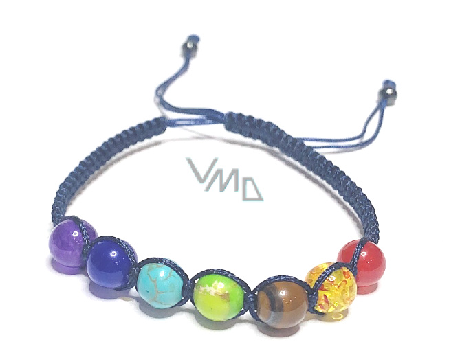 7 čaker léčebný korálkový náramek ručně vyráběný pletený, modrý, balanční korálky