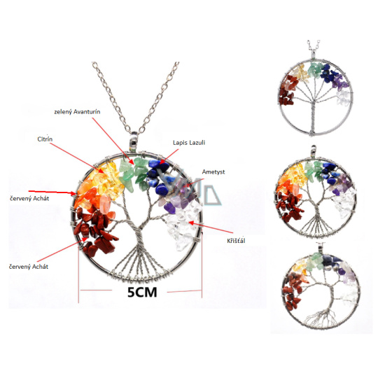 7 čaker Strom života přívěsek přírodní kámen, léčivý 5 cm