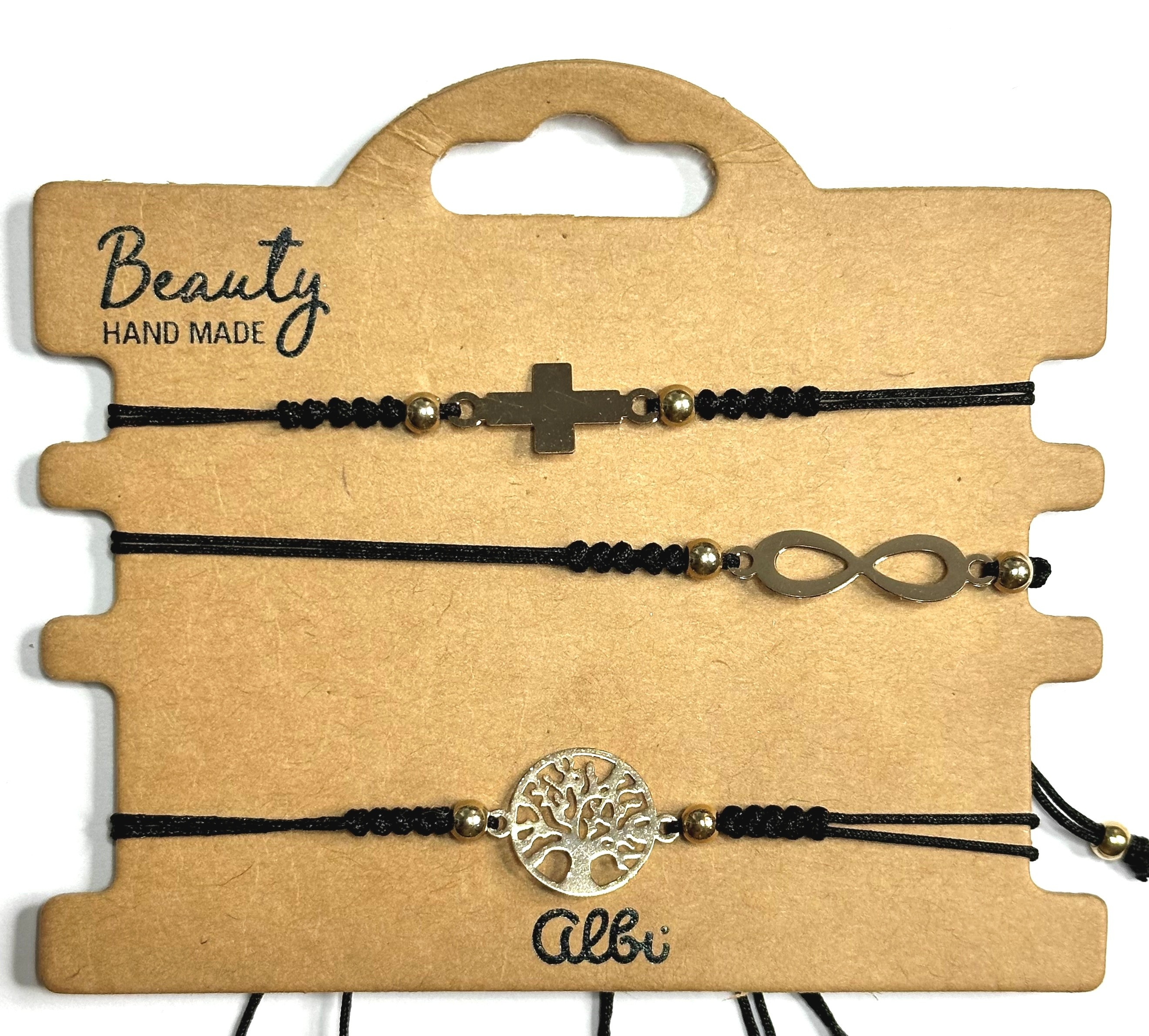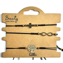 Albi Strom života, nekonečno, křížek náramek černý, nastavitelná velikost, sada 3 kusy