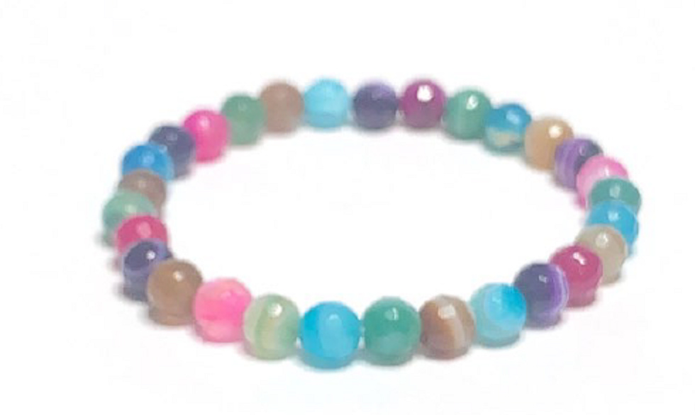 Achát pestrobarevný fazet čakrtový náramek elastický přírodní kámen, kulička 6 mm / 16 - 17 cm, klid - ochrana - síla - harmonie