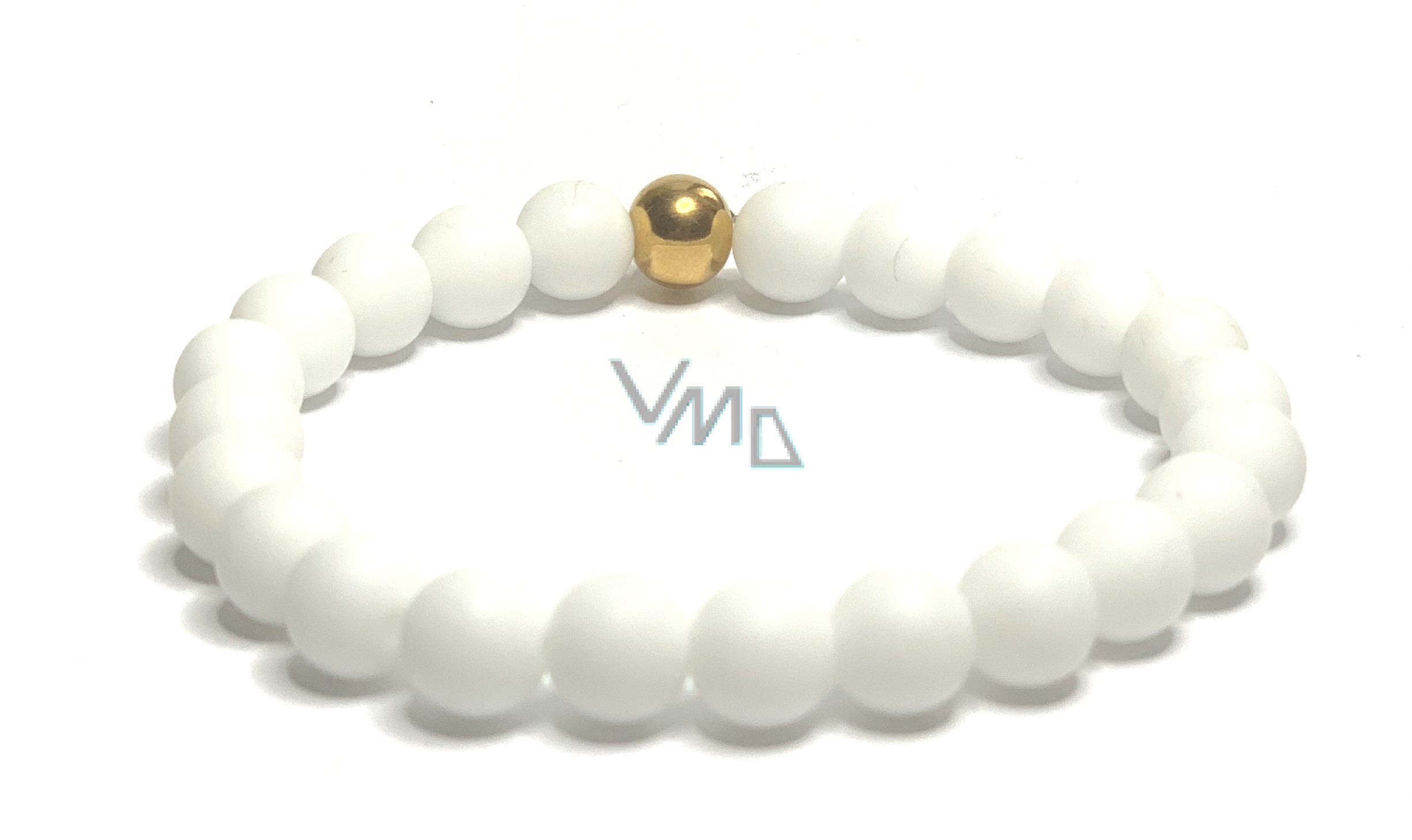 Achát bílý matný náramek elastický přírodní kámen, kulička 8 mm / 16 - 17cm, poskytuje klid a mír