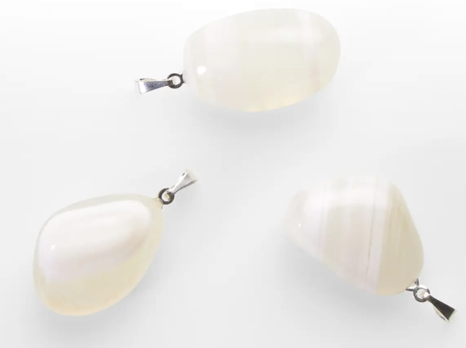 Achát bílý Troml přívěsek přírodní kámen, M cca 3 cm, 1 kus, poskytuje klid a mír