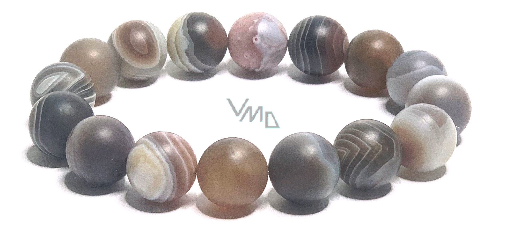 Achát Botswana šedý matný náramek elastický přírodní kámen, kulička 10 mm / 16 - 17 cm, přináší do života úspěch