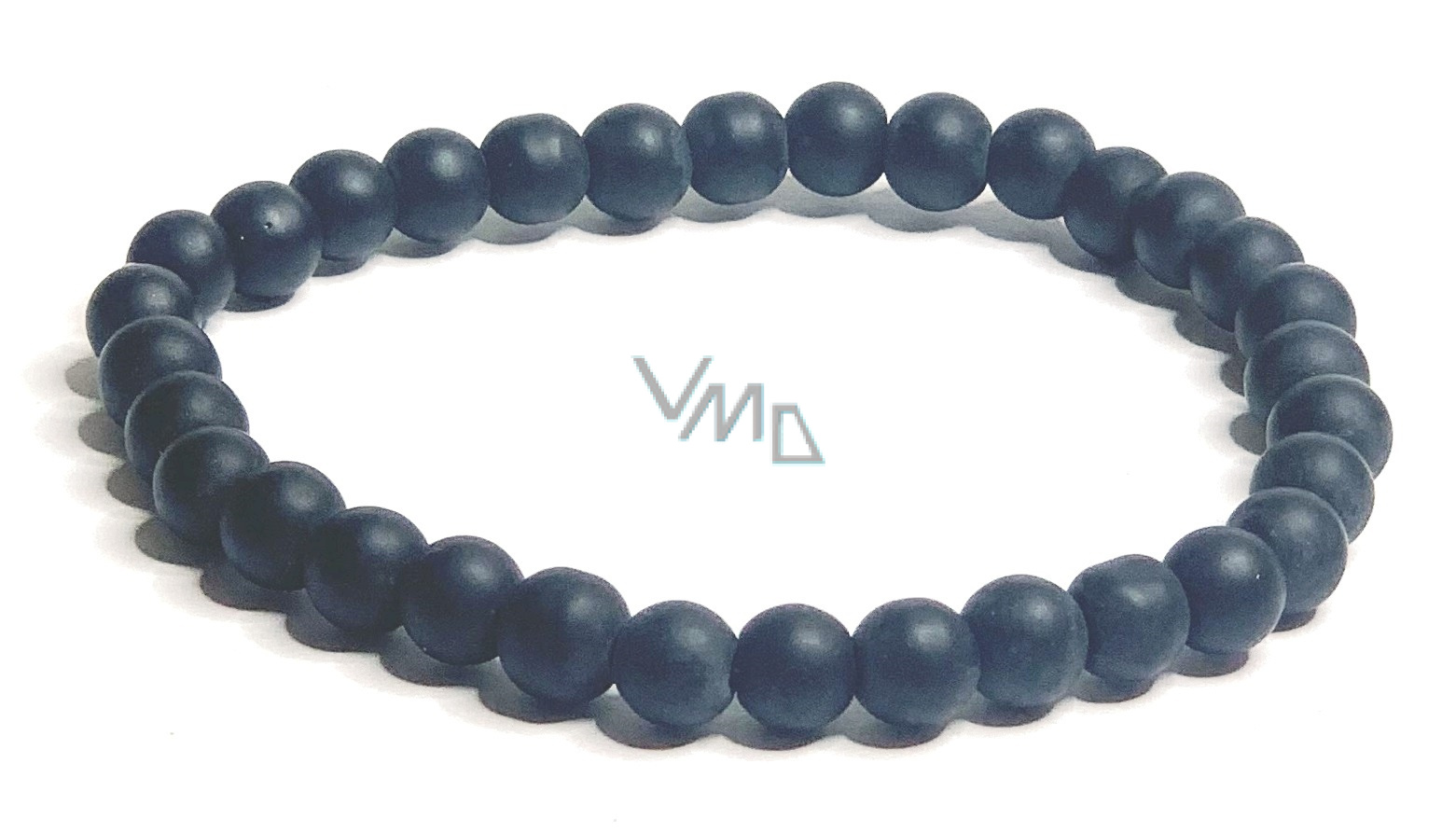 Achát černý matný náramek elastický přírodní kámen, kulička 6 mm / 16 - 17 cm, dodává odvahu a sílu