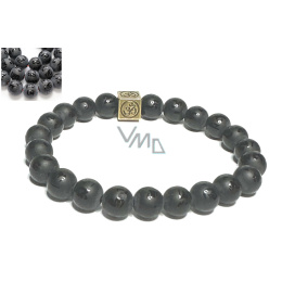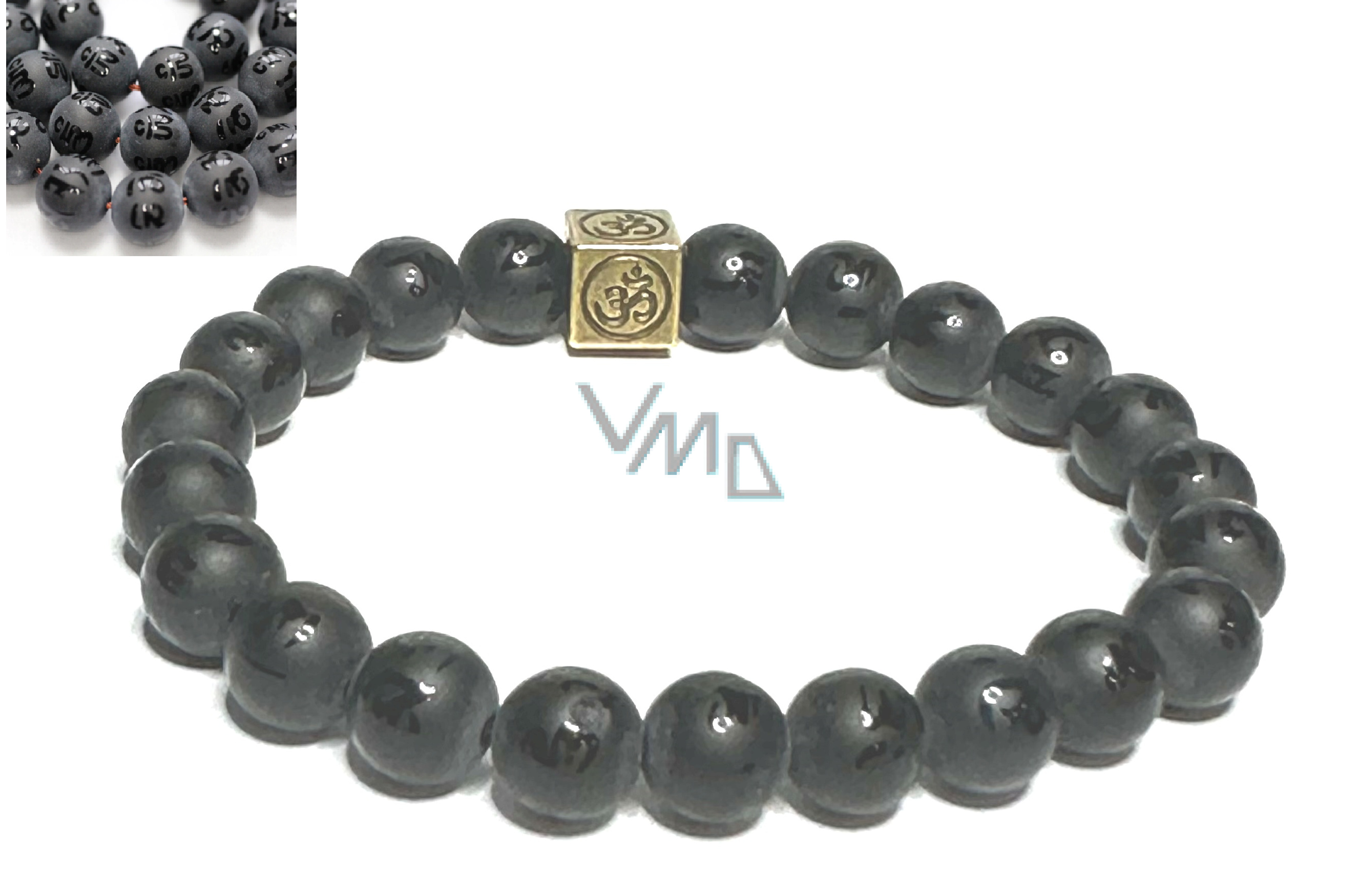 Achát černý matný s královskou mantrou Óm náramek elastický přírodní kámen, kulička 8 mm / 16 - 17 cm, dodává odvahu a sílu