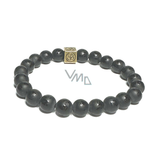 Achát černý matný s královskou mantrou Óm náramek elastický přírodní kámen, kulička 8 mm / 16 - 17 cm, dodává odvahu a sílu