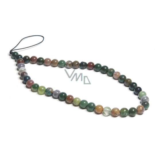 Achát Indický přívěsek na mobilní telefon proti ztrátě, přírodní kámen korálek 6 mm / 26,5 cm, symbolizuje element země